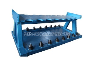 汽轮机螺栓支架是在汽轮机检修时,将拆解下来的汽缸螺栓稳固并稍有倾斜的立在螺栓支架上,螺栓支架带自锁装置。目的是保护螺栓的螺纹不受损伤,方便了检修人员对螺栓螺纹的修整,也大大的节省了检修现场的空间。